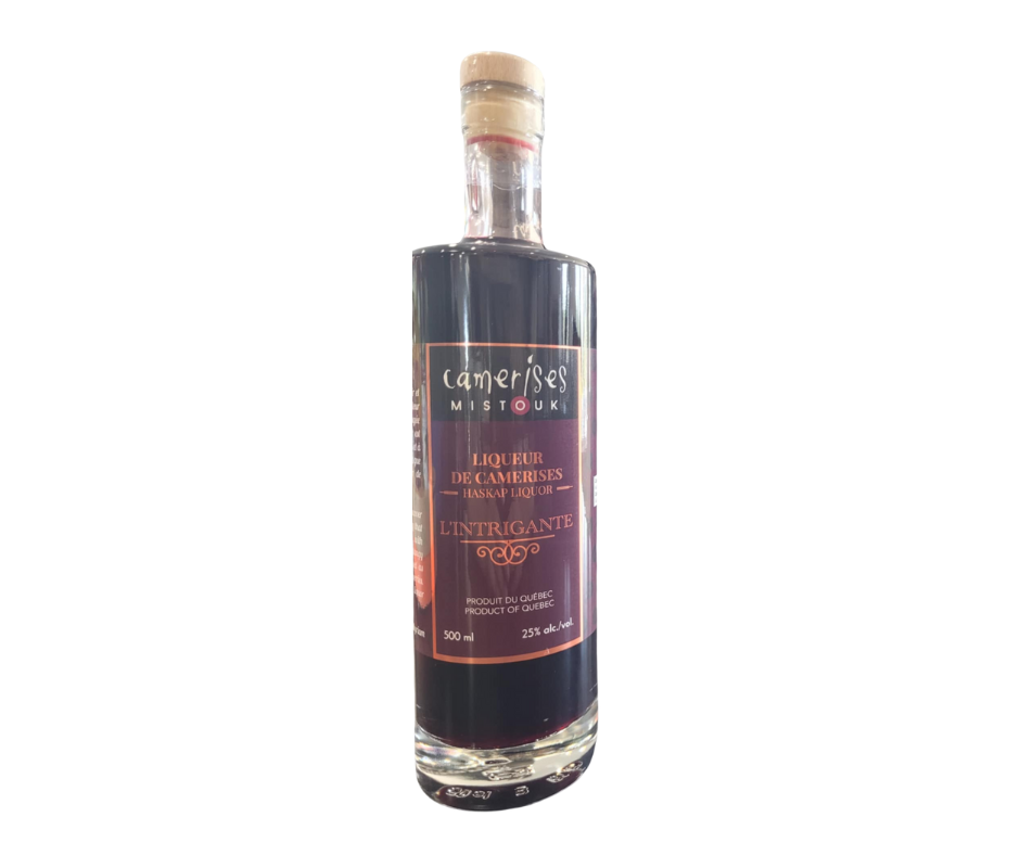 “The haskap berry is a fruit to discover and to dare. It's a small berry the color of blueberry, with a more elongated shape and a tangy flavor. Its taste is often associated with blueberries, blackcurrants and raspberries. That's why we call our haskap liqueur L'INTRIGANTE.”