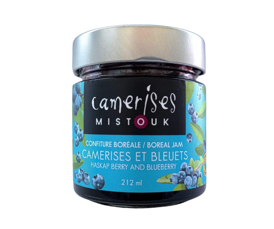 Une confiture qui met en valeur le goût de la camerise et du bleuet. Elle est tout en douceur avec du caractère grâce à sa petite touche surette et ses épices boréales. Elle est unique et accompagne les déjeuners avec panache et style.