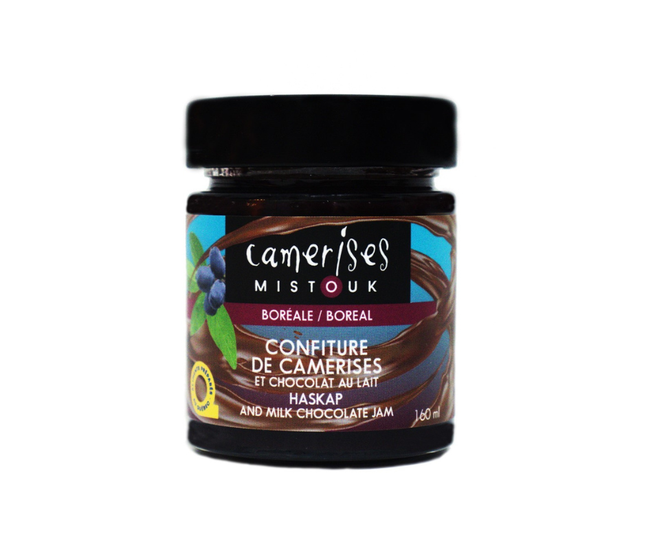 Le goût de la camerise se marie exceptionnellement bien avec celui du chocolat. La petite touche surette de la camerise mêlée au goût velouté du chocolat en fait une confiture qui comble le palais autant des petits que des grands.