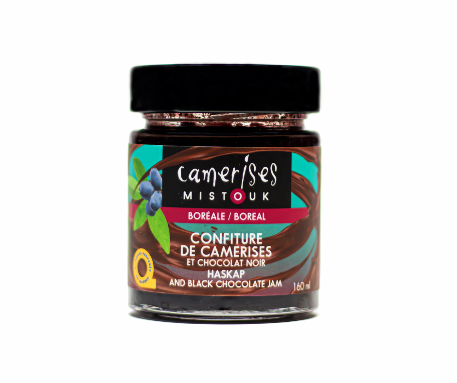 Le goût de la camerise se marie exceptionnellement bien avec celui du chocolat. La petite touche surette de la camerise mêlée au goût velouté du chocolat en fait une confiture qui comble le palais autant des petits que des grands.