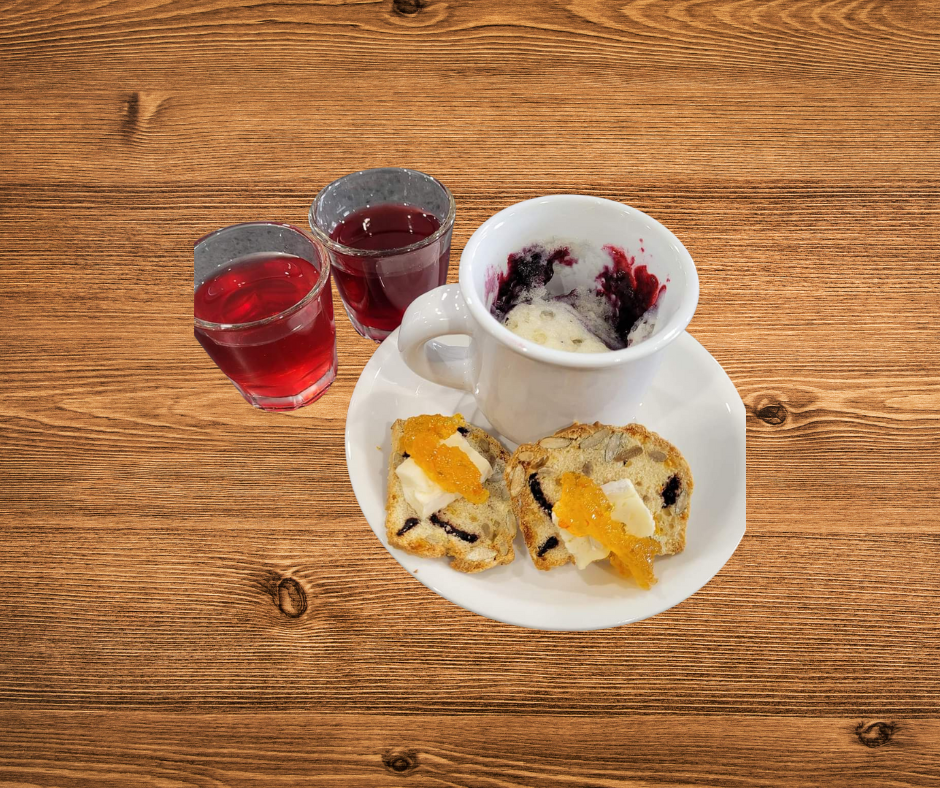 - Petites biscottes (sans noix) aux camerises accompagnées de gelée de piments à la marguerite;