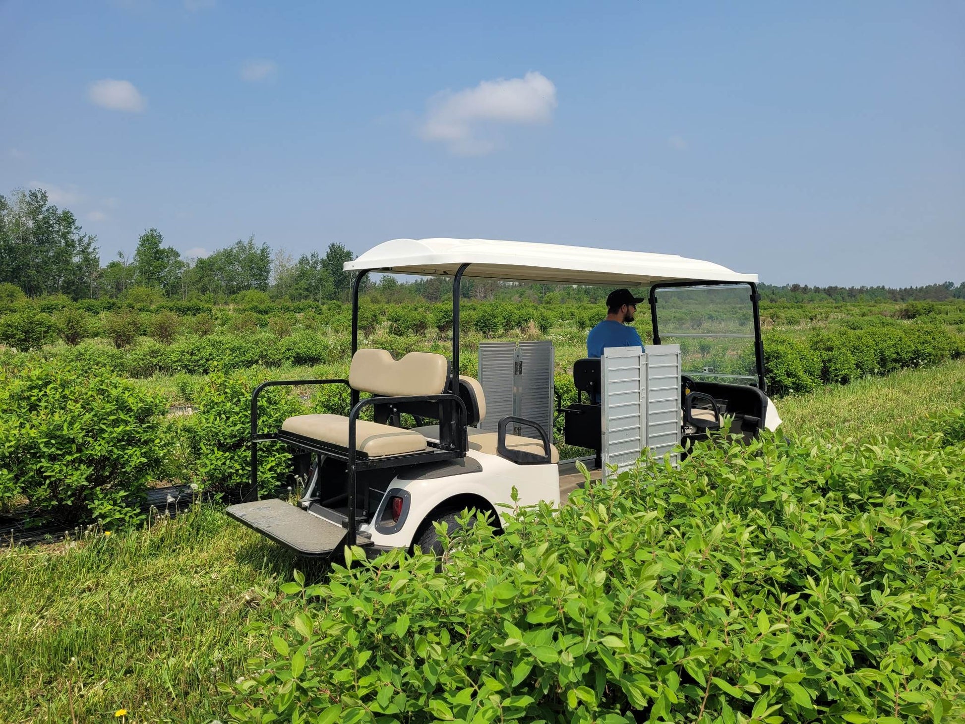Visite en véhicule adapté qui est parfaite pour les personnes en mobilité réduite qui désirent découvrir les champs et l'histoire de la camerise. La trame audio dans le véhicule sera répondre à vos questions, tels que qu'est-ce que la camerise? Comment récolte-t-on la camerise? Et plus encore.